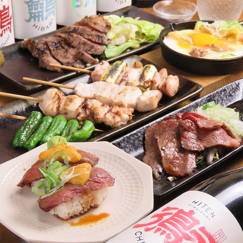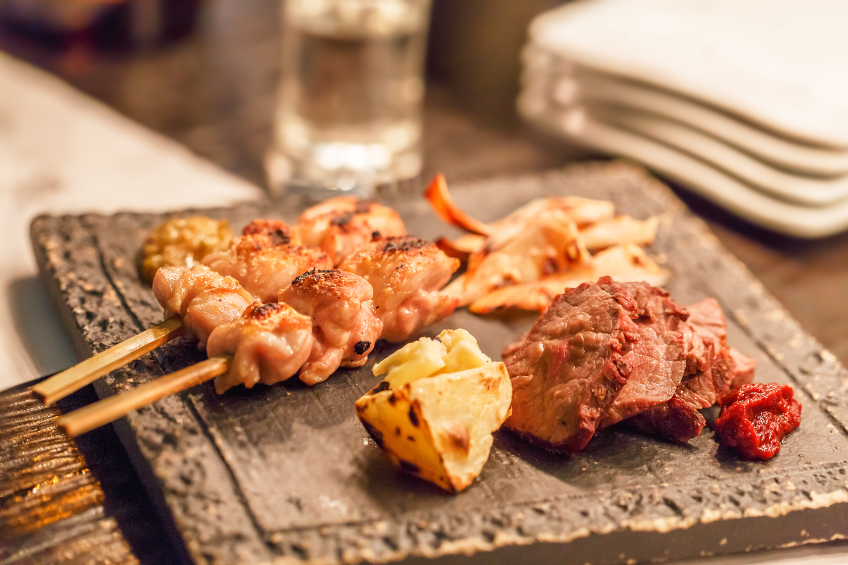 比内地鶏の旨味成分の一つとして知られている「イノシン酸」、食味を良くするといわれている「アラキドン酸」が普通の鶏肉より多く含まれていることがわかっています。当店では比内地鶏を焼き鳥やむねたたきとして美味しくご提供しております。